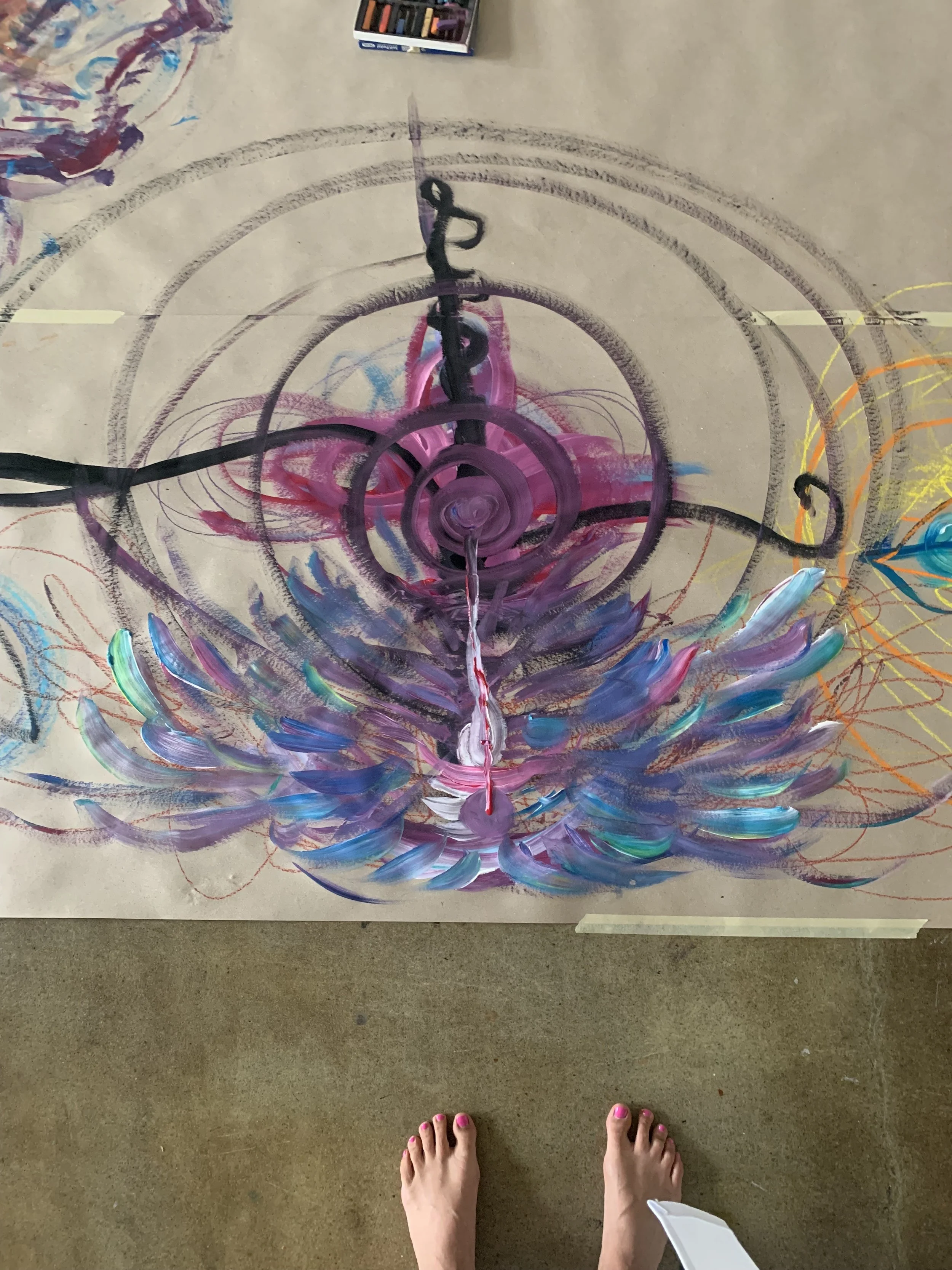 Somatic painting strengthens interception, empowers intuition, supports the embodiment of confidence, and promotes overall wellbeing for the mind, body and spirit.